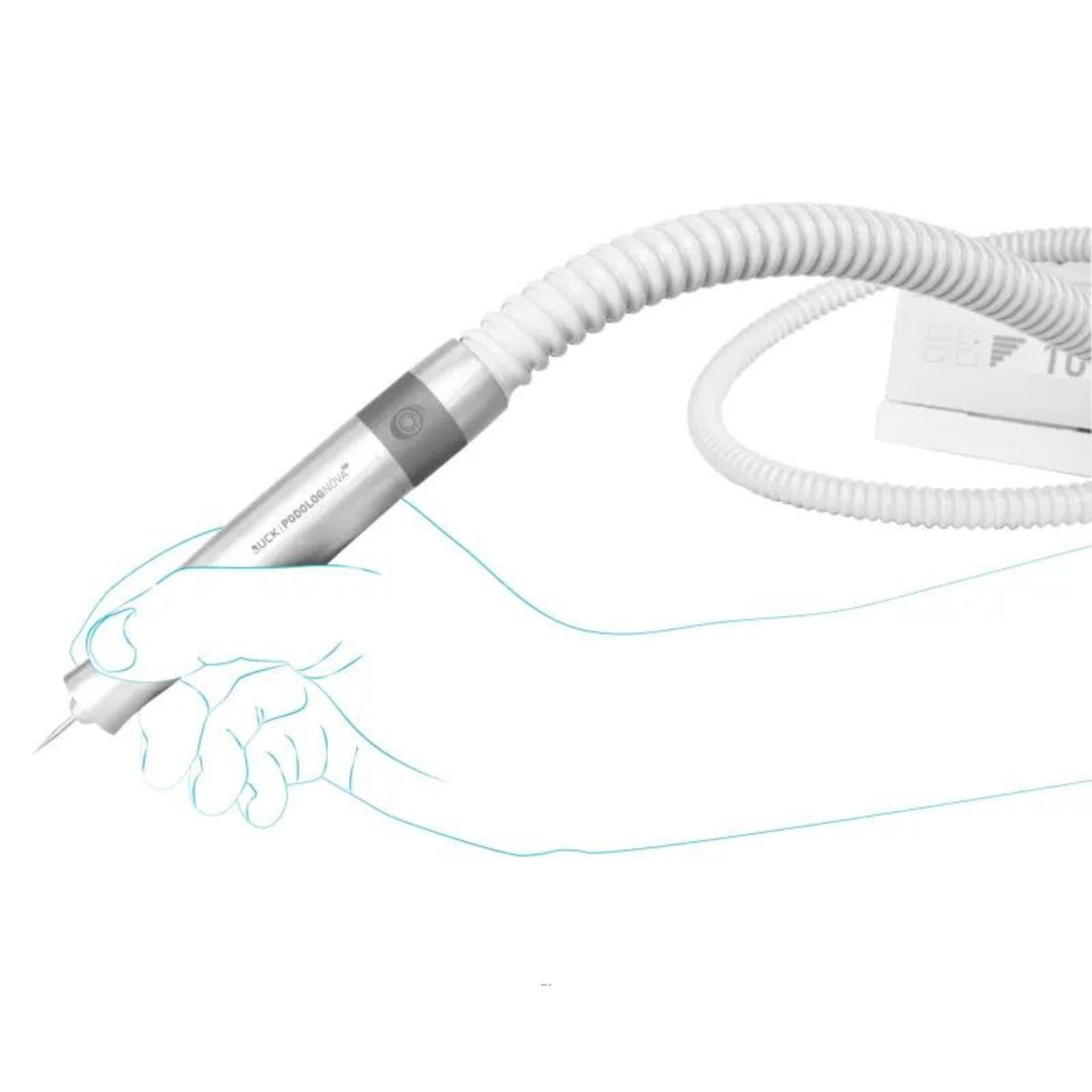 Aparelho para cuidados com os pés com micromotor sem escova. Potência de tração permanente de até 40.000 rpm graças ao rastreamento eletrónico de força.