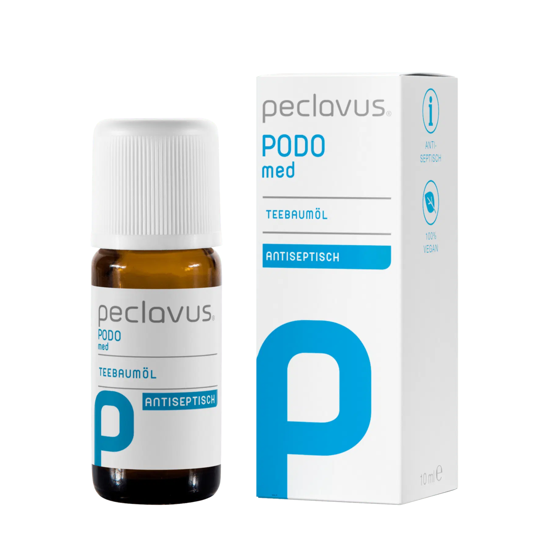 O óleo da árvore do chá (Tea Tree) peclavus® PODOmed, uma essência muito especial com uma ampla gama de usos. Tem um efeito anti-séptico e calmante. Óleo de tea tree 100% natural da Austrália.